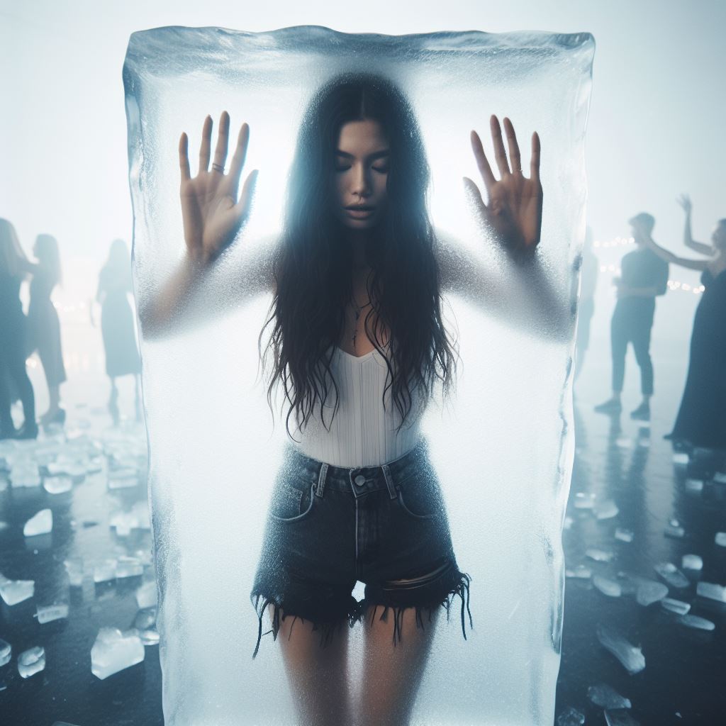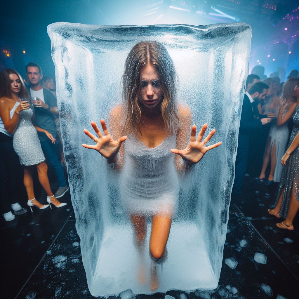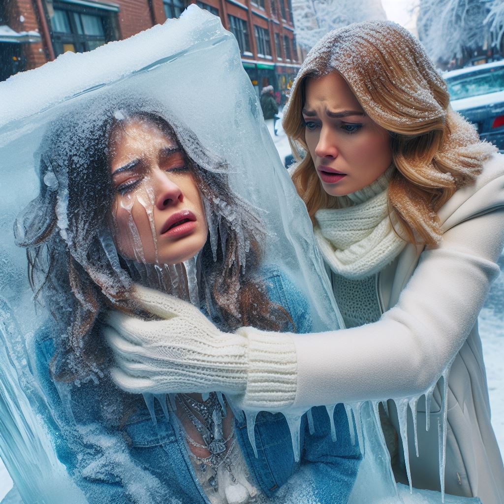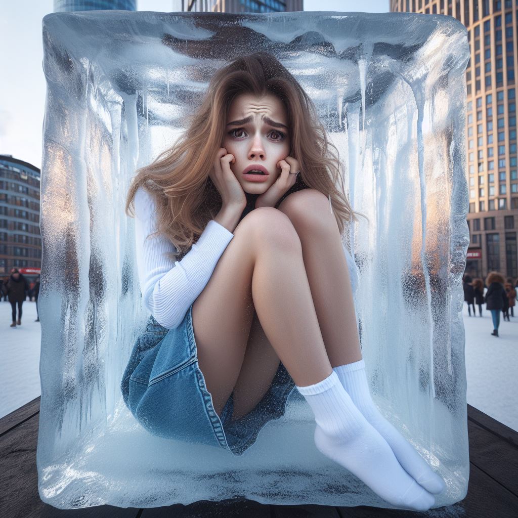 women frozen in ice block with artificial intelligence. I have created some images with artificial intelligence here are some