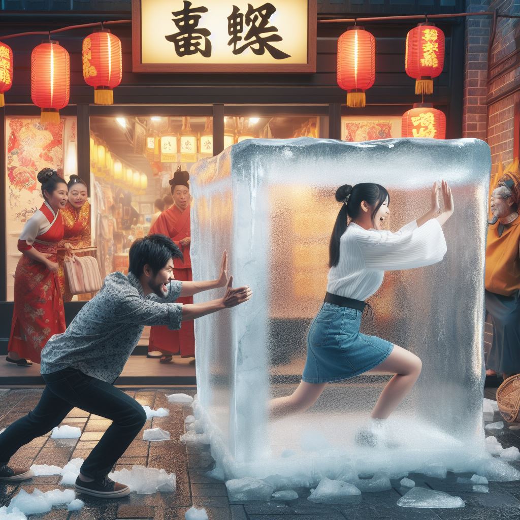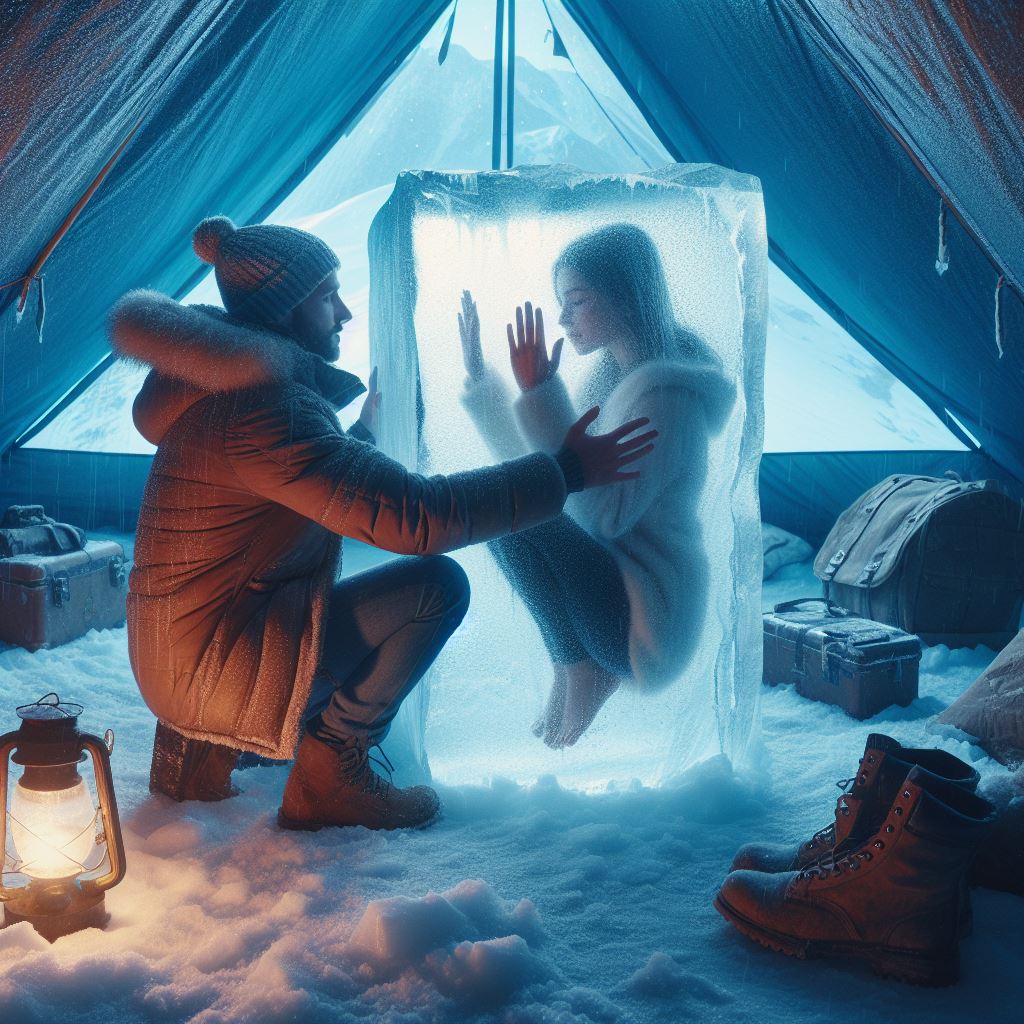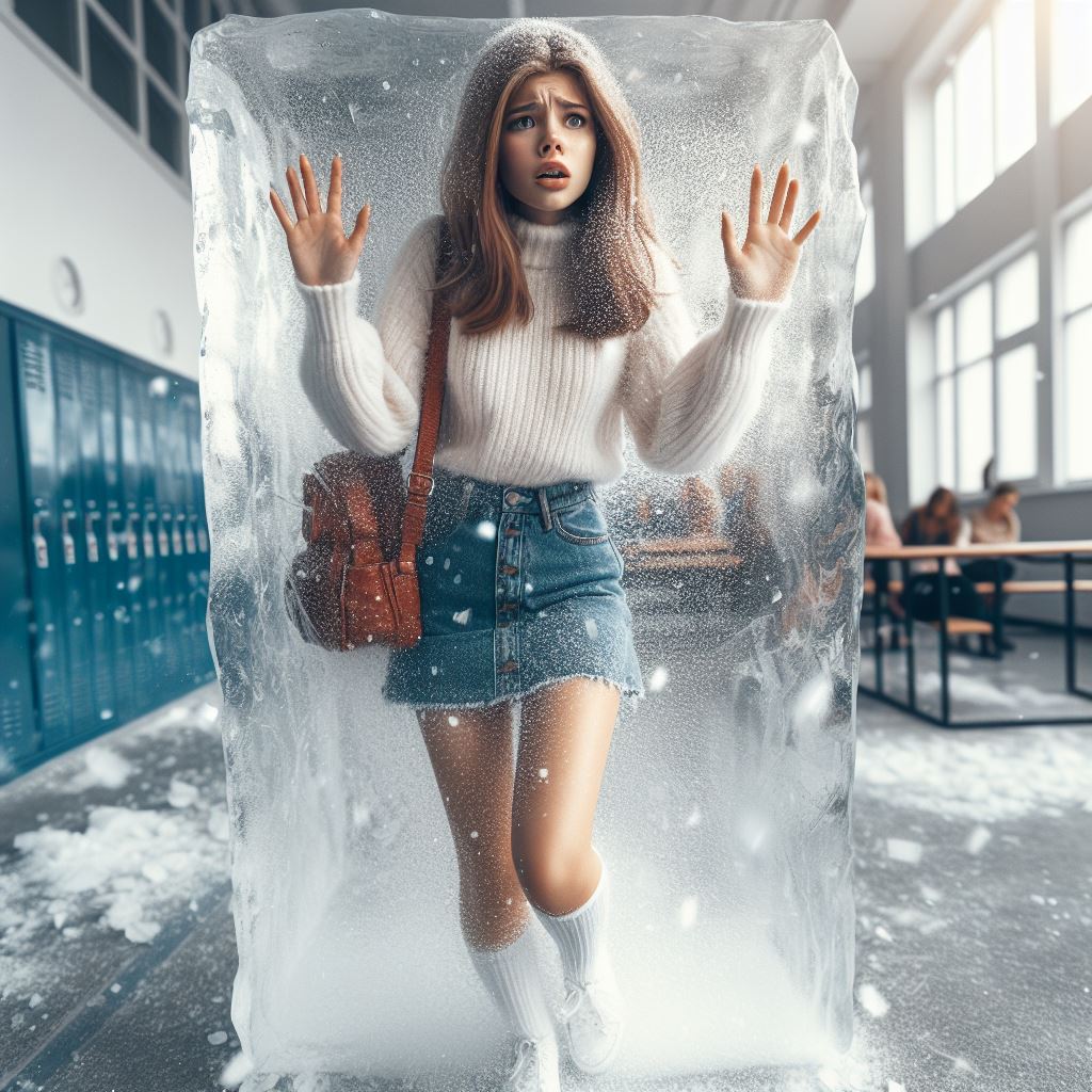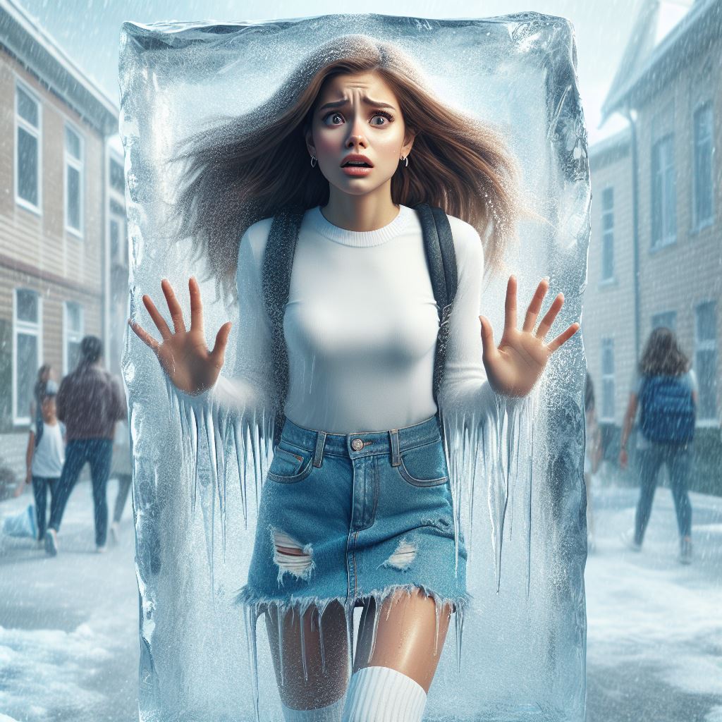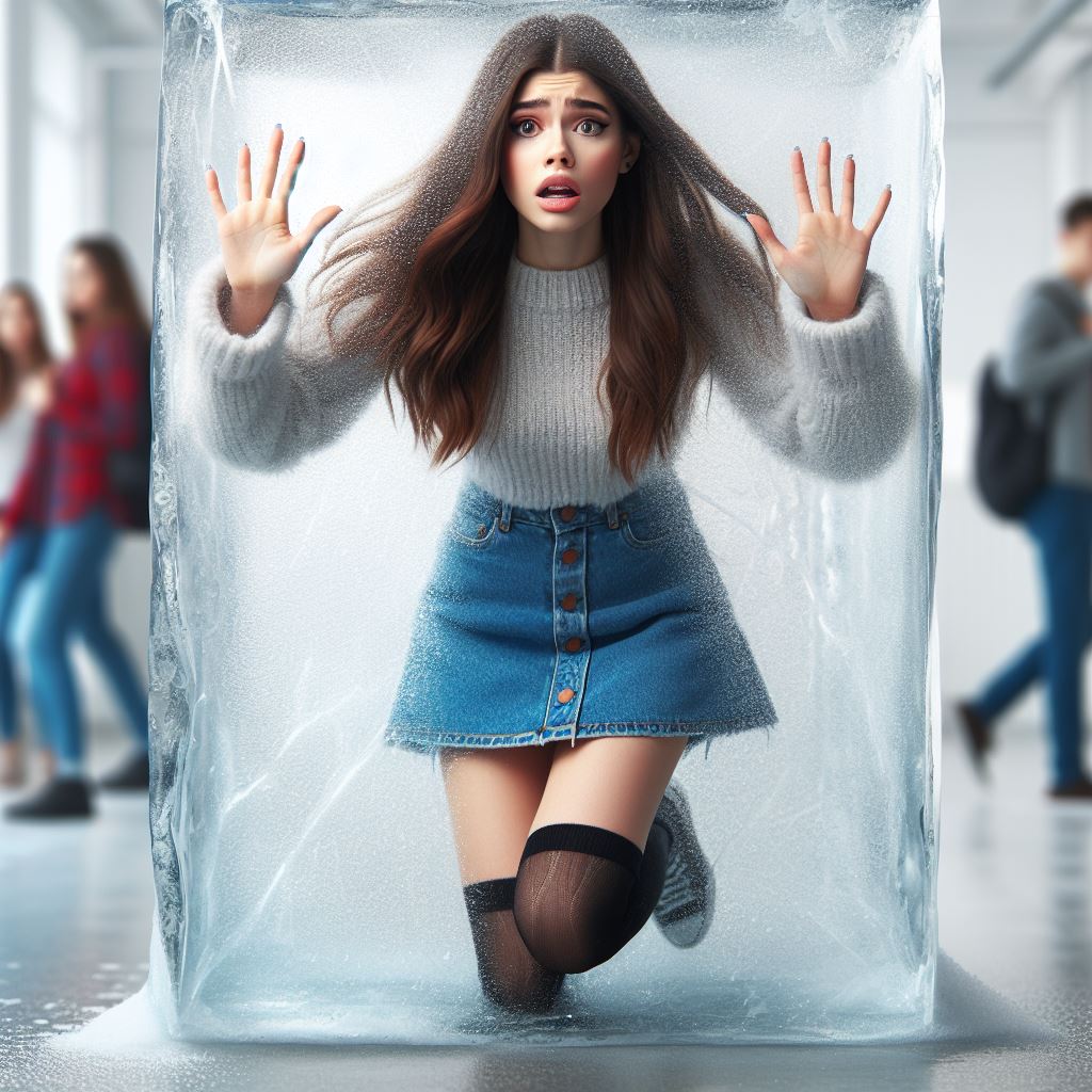 women frozen in ice block with artificial intelligence. I have created some images with artificial intelligence here are some