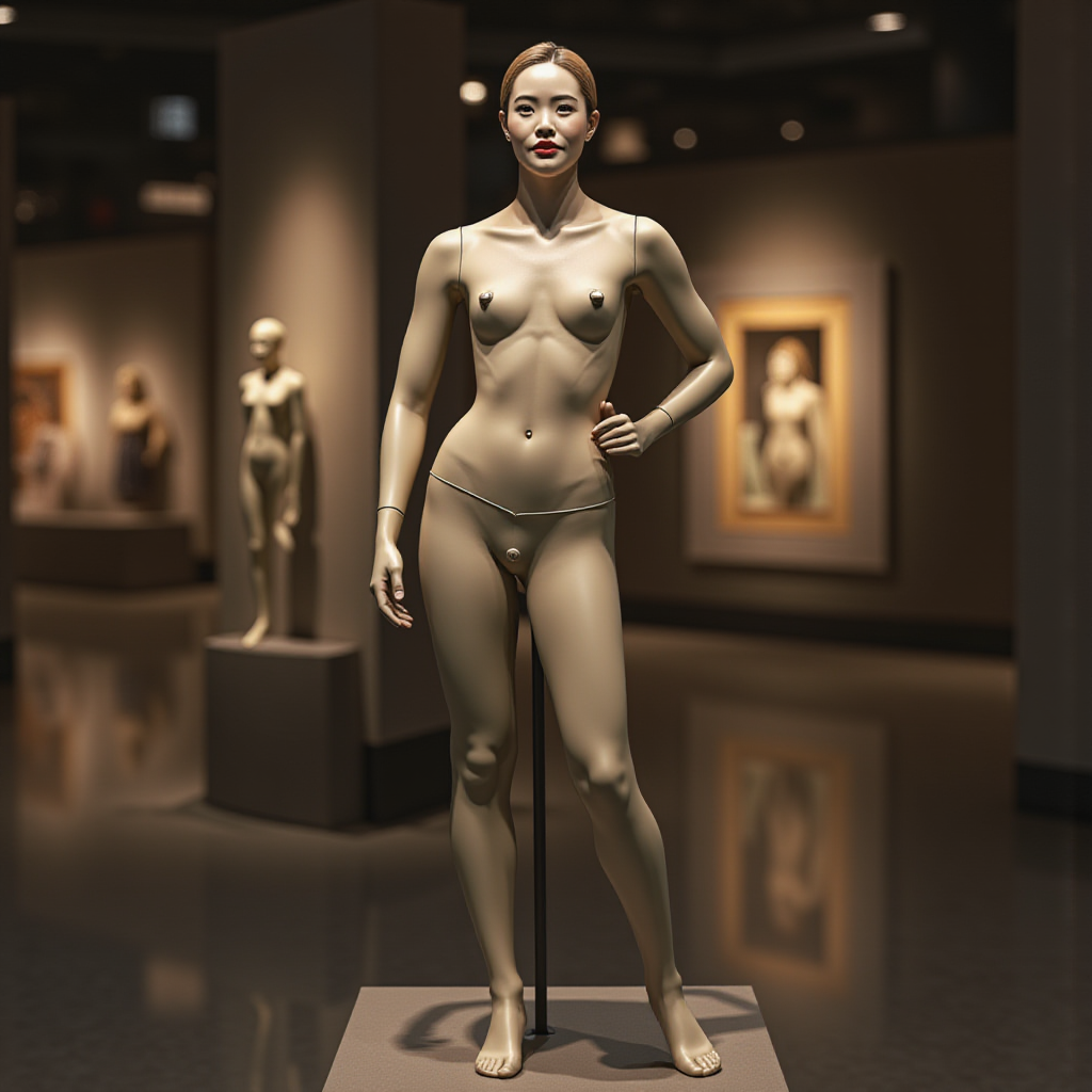 And here is the example of what type of outputs can be achieved by adding this adapter + including the trigger word 'ywx' into a simple prompt ("girl poses naked as mannequin in a store display ywx")